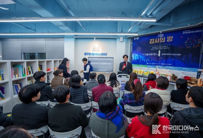 [ 한국미디어뉴스 이종철 기자 ] 전남대학교 산학협력단 산하 광주청년일자리스테이션 동명이 지난 12월 16일 스테이션 동명에서 연말 성과 공유 행사 ‘2025 감사의 밤’을 열고, 한 해 동안 함께해 온 참여 청년들과 협력 기관 관계자들에게 감사의 뜻을 전했다.