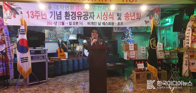 [ 한국미디어뉴스 이보영 기자 ]2025년 12월 19일 사단법인 대자연환경운동연합 인천광역시연합회는 제13주년 창립기념 행사와 환경유공자 시상식 및 송년회를 인천 서구 가좌동 비개인날오후 레스토랑,호프에서 실시했다.