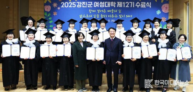 [ 한국미디어뉴스 이종철 기자 ] 강진군은 지난 11일 청소년수련관 3층 강당에서 ‘제12기 여성대학 수료식’을 개최했다고 22일 밝혔다.