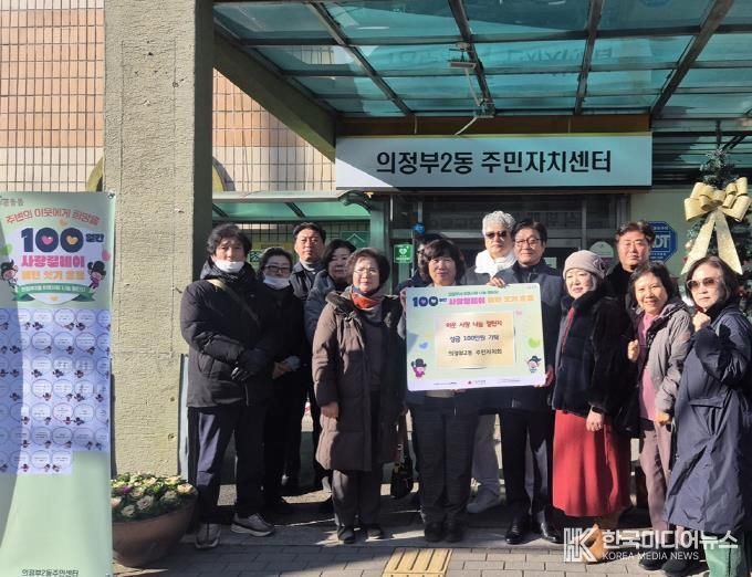 [ 한국미디어뉴스 김서안 기자 ] 의정부시 의정부2동주민센터는 12월 22일 의정부2동 주민자치회가 ‘100일간 사랑릴레이 배턴 잇기’에 동참해 취약계층을 위한 성금 100만 원을 전달했다고 밝혔다.