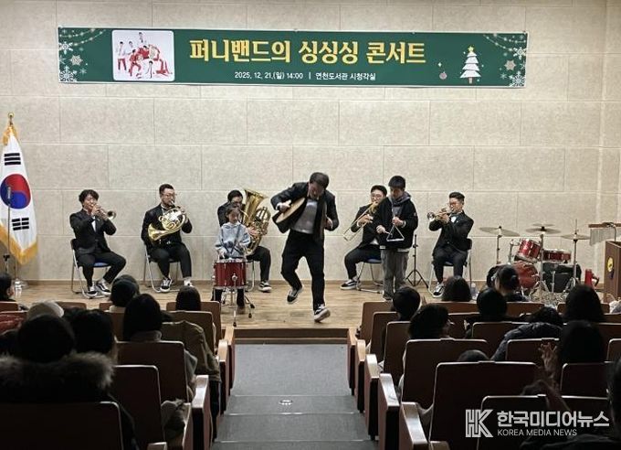 [ 한국미디어뉴스 김서안 기자 ] 연천도서관은 지난 21일 오후 2시 '퍼니밴드 싱싱싱 콘서트'를 성공적으로 개최해 많은 연천군민들에게 연말의 특별한 문화 향유 기회를 제공했다. 이날 공연은 수많은 군민들이 찾아와 유쾌하고 열정적인 분위기 속에서 진행됐다.