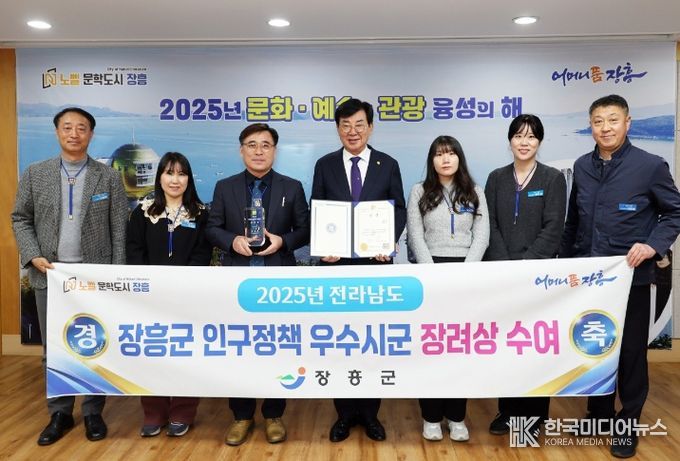 [ 한국미디어뉴스 이종철 기자 ] 장흥군은 지난 19일 전라남도에서 주관한 인구정책 우수 시·군 평가에서 2년 연속 우수군(장려상)으로 선정됐다.