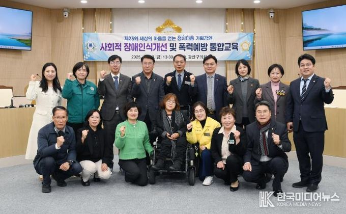 [ 한국미디어뉴스 이종철 기자 ] 광산구의회가 19일 전체 의원을 대상으로 장애인식 개선 및 4대 폭력 예방을 위한 ‘정치다움 기획강연’을 개최했다.