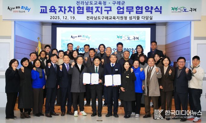 [ 한국미디어뉴스 이종철 기자 ] 구례군은 지난 19일, 구례교육지원청 섬지뜰 다담실에서 전라남도교육청, 구례교육지원청, 구례군의회, 학교장, 민관산학위원, 학부모연합회 등 50여명이 참석한 가운데‘구례교육자치협력지구’업무협약을 체결했다고 밝혔다.