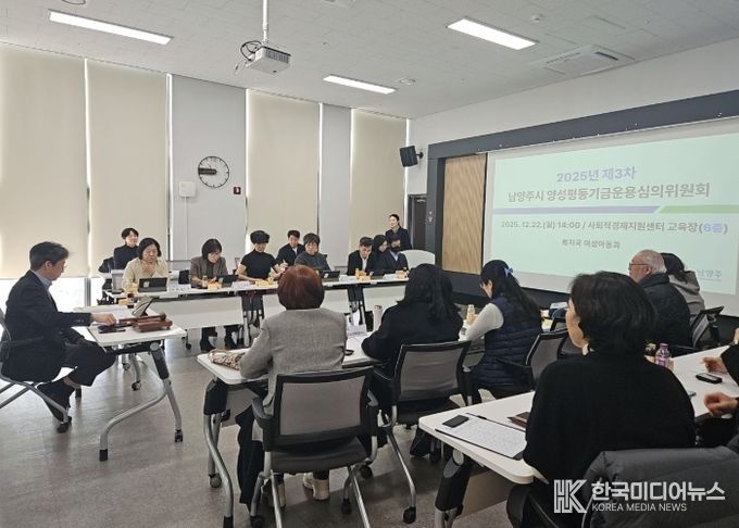 [ 한국미디어뉴스 김서안 기자 ] 남양주시는 22일 남양주사회적경제지원센터에서 ‘2025년 제3차 남양주시 양성평등기금운용심의위원회 및 성과공유회’를 개최하고, 올해 추진한 양성평등기금 지원사업의 성과를 공유하며 2026년도 사업방향을 논의했다고 밝혔다.