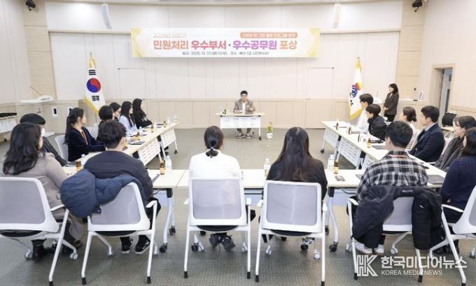 [ 한국미디어뉴스 이원영 기자 ] 삼척시는 12월 23일 시청 시민회의장에서 2025년 하반기 민원처리 우수부서와 우수공무원에 대한 포상식을 개최하여 민원 서비스 향상에 기여한 직원들을 격려했다.