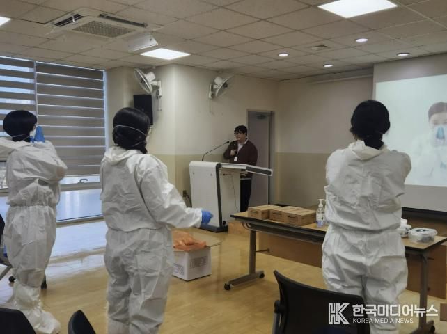 이번 교육은 감염병 발생 시 신속하고 안전한 대응을 위해 마련됐으며, 보건소 직원들이 개인보호구(Level D 보호복, N95 마스크, 고글, 덧신 등)의 착용과 탈의 과정을 직접 실습하는 방식으로 진행됐다.
