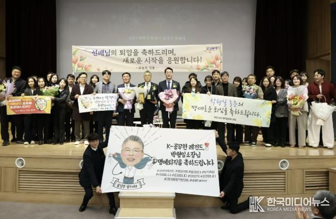 [ 한국미디어뉴스 이원영 기자 ] 화성특례시는 2025. 12. 23. 화성시청 대강당에서 2025년 하반기 공직자 퇴임식을 개최하고, 최장 36년에서 최소 32년에 이르는 오랜 기간 시정 발전을 위해 헌신한 공직자 총 9명의 퇴임을 기념했다.