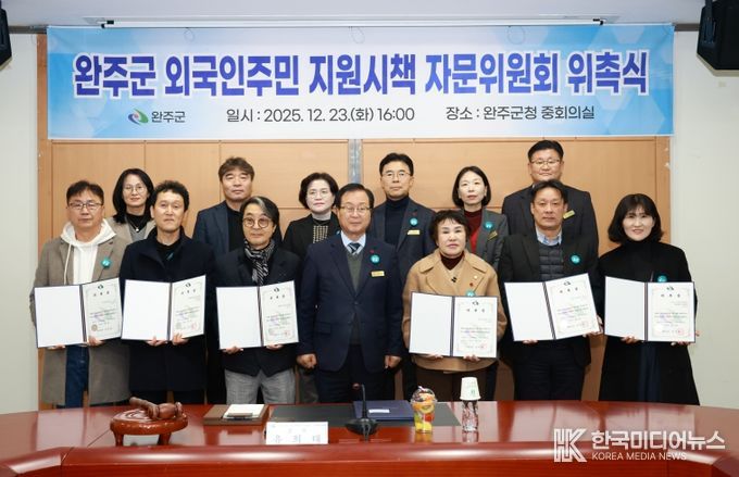 [ 한국미디어뉴스 이종철 기자 ] 완주군이 외국인 주민 지원 정책의 체계적 추진을 위해 ‘외국인주민 지원시책 자문위원회’를 구성하고, 지난 23일 중회의실에서 위촉식을 열었다.