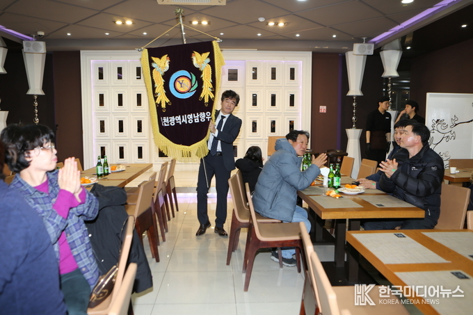 그리고 이동욱 향우회 회장으로부터 임원소개 및 인사를 하였으며 인사말에서 다사다난했던 2025년이 저물어 가는데 안전하게 지금까지 왔다며 다가오는 병오년은 붉은 말띠의 해로 하루에 천 리를 달린다는 명마 즉 적토마의 기운을 가진 해가 2026년 이라며 말은 자유,활력,속도,진취성을 상징하고 불의 열정까지 합쳐지는 해이니 만큼 변화와 도약 그리고 도전의 기회가 열리는 시기가 될 것이니 영남향우회가 비상과 도약하는 해가 되기를 바란다며 인사를 했다.