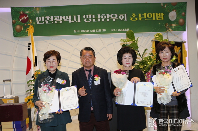 [ 한국미디어뉴스 이보영 기자 ] 2025년 12월 22일(월) 오후6시부터 인천광역시 영남향우회는 계양구 카리스호텔 12층 대연회장에서 장향미 사무국장의 사회로 송년의 밤 행사를 실시했다.