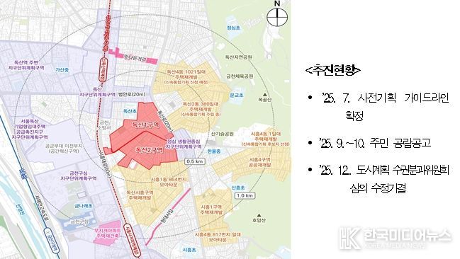 [ 한국미디어뉴스 이원영 기자 ] 서울시는 2025년 12월 24일 '제14차 도시계획위원회 신속통합기획 정비사업 등 수권분과위원회'를 개최하여 ‘독산동 1036일대(독산1구역)’과 ‘독산동 1072 일대(독산2구역)’ 주택정비형 재개발사업 정비구역 지정 및 정비계획 결정(안)을 '수정가결' 했다고 밝혔다.
