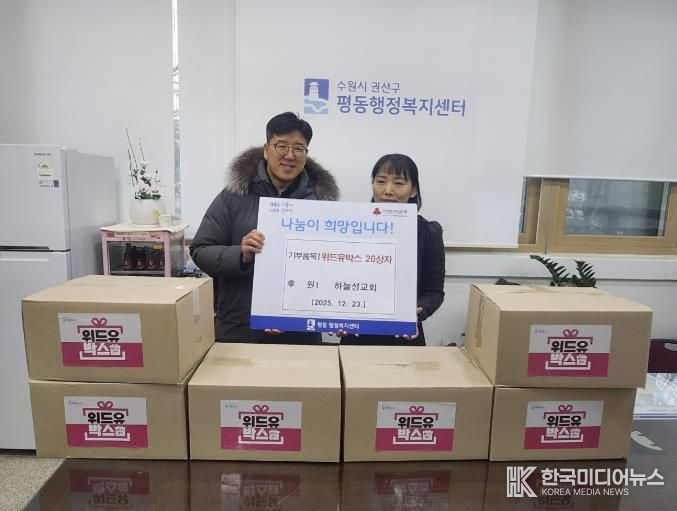 [ 한국미디어뉴스 이보영 기자 ] 수원시 권선구 고색동 소재 하늘성교회는 지난 23일 성탄절을 맞이하여 '위드유박스' 21박스를 평동 행정복지센터에 전달했다.