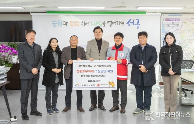 [ 한국미디어뉴스 이원희 기자 ] 인천 서구는 지난 24일 대한적십자사 인천광역시지사(회장 조의영)로부터 온누리상품권(800만 원 상당)을 전달받았다.