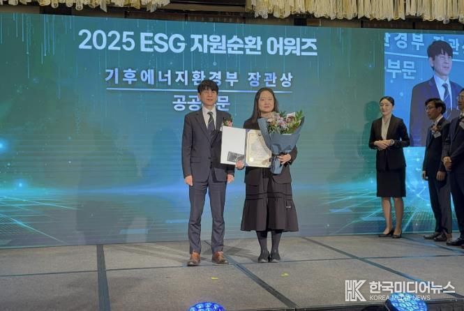 [ 한국미디어뉴스 김서안 기자 ] 연천군시설관리공단은 지난 24일 열린 ‘2025 ESG 자원순환 어워즈’에서 공공기관 부문 우수기관으로 선정되어 기후에너지환경부 장관상을 수상했다고 밝혔다.