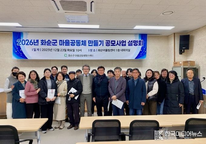 [ 한국미디어뉴스 이종철 기자 ] 화순군은 지난 23일 화순어울림센터 대회의실에서 ‘2026년 마을공동체 만들기 공모사업 설명회’를 개최했다고 밝혔다.