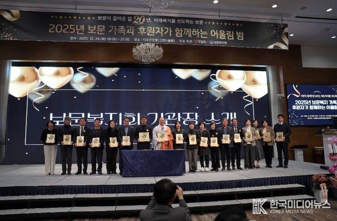 [ 한국미디어뉴스 이종철 기자 ] 사회복지법인 보문복지회는 설립 20주년을 기념해 지난 12월 23일 디오션호텔 그랜드볼룸에서 ‘2025년 보문 가족과 후원자가 함께하는 어울림 밤’을 개최했다.