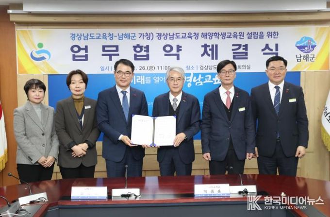 [ 한국미디어뉴스 이원영 기자 ] 경상남도교육청은 26일 오전 11시, 본관 2층 중회의실에서 남해군과 함께 경상남도교육청 학생교육원 남해분원을 증·개축하여 ‘(가칭)경상남도교육청 해양학생교육원’ 설립하기 위한 업무협약을 체결했다.