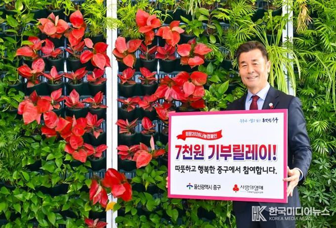 중구는 12월 26일 오전 11시 30분 중구청 구청장실에서 7천 원 기부 릴레이 참여식을 열었다.