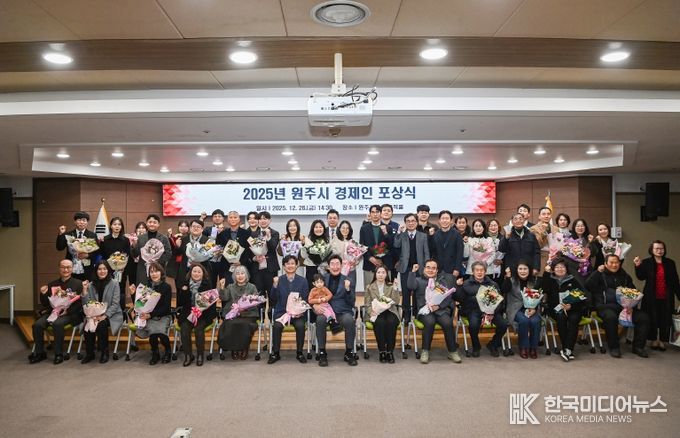 [ 한국미디어뉴스 이원영 기자 ] 원주시는 26일 오후 2시 30분, 시청 지하1층 다목적홀에서 ‘2025년 원주시 경제인 포상식’을 개최했다.