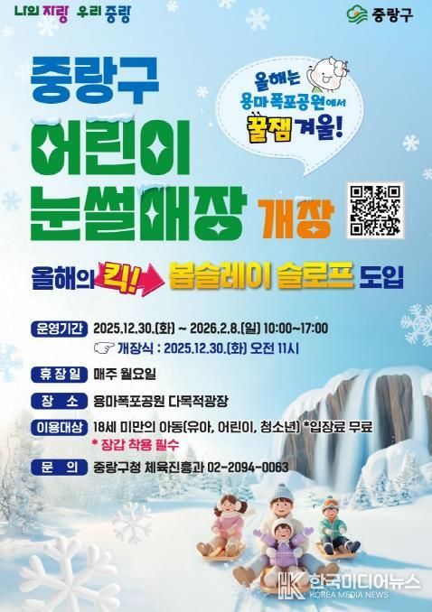 어린이 눈썰매장은 매년 방학 기간 구민들의 큰 호응을 얻고 있는 중랑구의 대표적인 겨울 놀이 공간이다. 오는 30일 오전 11시, 용마폭포공원 다목적광장에서 열리는 개장식을 시작으로 본격적인 운영에 들어간다.