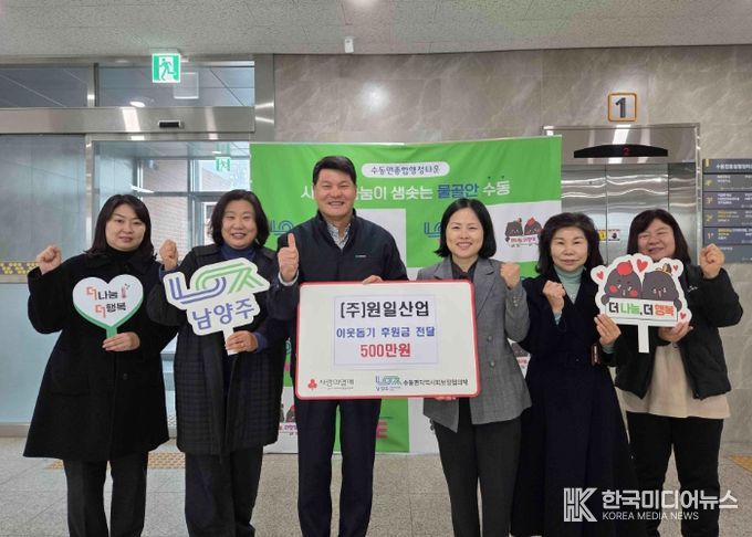 [ 한국미디어뉴스 김서안 기자 ] 남양주시는 29일 수동면 소재 ㈜원일산업에서 지역 내 어려운 이웃을 위한 후원금 500만 원을 경기사회복지공동모금회를 통해 수동면 지역사회보장협의체에 지정 기탁했다고 밝혔다.
