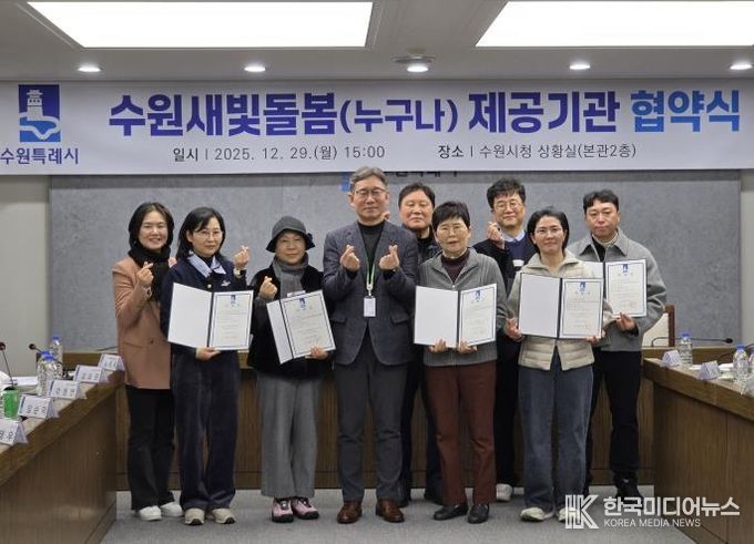 수원새빛돌봄(누구나) 재협약 대상 서비스 기관은 17개소다. 제공서비스는 생활돌봄·동행돌봄 5개소, 생활돌봄 1개소, 주거안전 3개소, 식사지원 5개소, 일시보호 2개소, 재활돌봄 1개소로 구성됐다. 협약 기간은 2026년 1월 1일부터 2027년 12월 31일까지 2년이다.