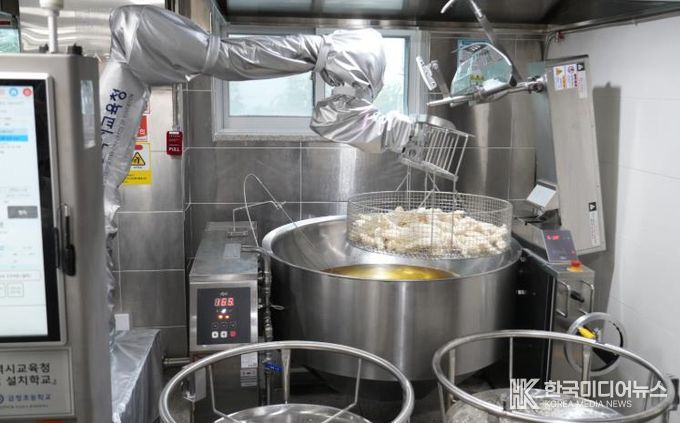 부산교육청은 한국로봇산업진흥원이 주관하는 ‘2025년 서비스로봇 실증사업’에 지난 5월 최종 선정돼 국비 지원을 받았으며, 이를 바탕으로 올해 2학기부터 학교급식실에 조리로봇을 도입해 본격 운영에 들어갔다.
