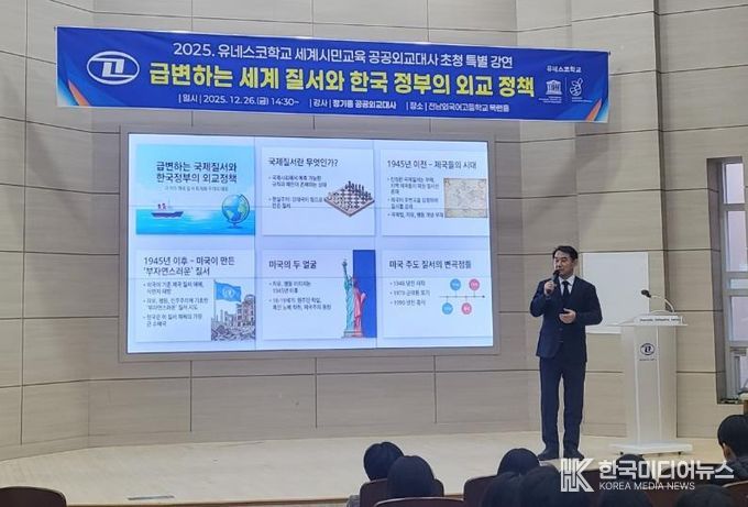정 대사는 “복잡하고 예측하기 어려운 국제 환경 속에서 국제사회를 올바르게 이해하는 안목을 갖는 것이 중요하다”며 “오늘의 강연이 학생들이 세계를 향한 시야를 넓히는 계기가 되길 바란다”고 전했다.