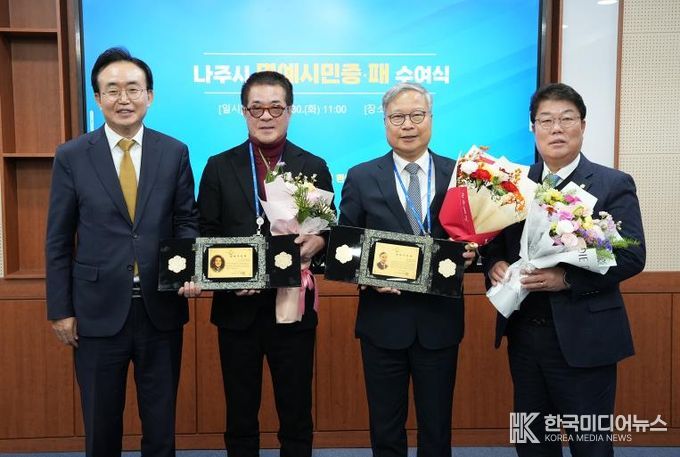 [ 한국미디어뉴스 이종철 기자 ] 전라남도 나주시가 에너지와 문화 분야에서 시정 발전과 도시 위상 제고에 기여한 인사를 명예시민으로 선정하고 그 공로를 공식적으로 기렸다.