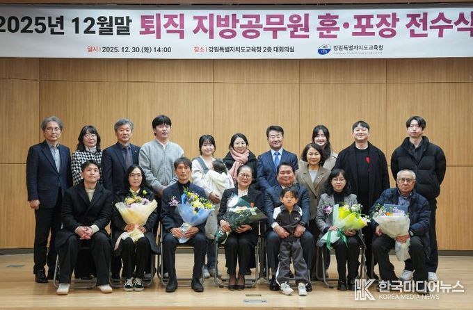 [ 한국미디어뉴스 이원영 기자 ] 강원특별자치도교육청은 30일 도교육청 2층 대회의실에서 퇴직 지방공무원 훈·포장 전수식을 개최했다.