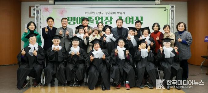 [ 한국미디어뉴스 이종철 기자 ] 진안군은 30일 군청 상황실에서 성인문해 교육과정을 성실히 이수한 어르신들을 대상으로 ‘성인문해 학습자 명예졸업장 수여식’을 개최했다.