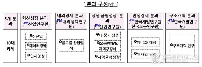 오늘 회의에서는 경인사연 소속 연구기관들이 집중 연구할 경제 대도약 10대 과제를 선별해 5개 분과로 편성하고 분과별 주관 연구기관(PM)을 지정했다. 아울러 연구 성과가 실제 정책으로 이어질 수 있도록 기재부를 중심으로 관계부처가 분과별 논의에 적극 참여해 연구기관들과 의견을 교환하도록 할 계획이다.