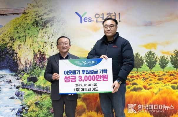 이에 연천군 관계자는 “한 해를 마무리하는 시점에 연천군을 위해 큰 기부를 해주셔서 진심으로 감사드린다”며 “기탁해주신 성금은 관내 소외계층을 위해 소중하게 쓰겠다”고 ㈜아트레이드의 따뜻한 마음에 고마움을 전했다.