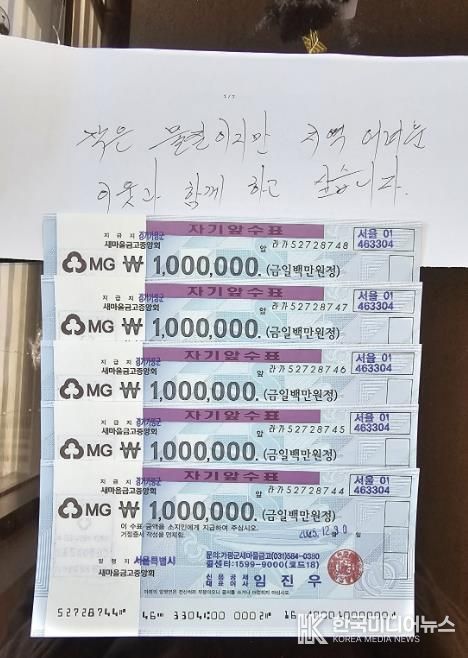 청평면의 ‘얼굴 없는 천사’로 알려진 이 기부자는 2016년부터 현재까지 10년째 익명 기부를 이어오며 매년 빠짐없이 성금을 전달해 오고 있다. 익명의 기부자가 전달한 봉투에는 “작은 물질이지만 지역의 어려운 이웃과 함께 하고 싶습니다.”라는 내용과 함께 100만 원권 수표 5장이 담겨 있었다.