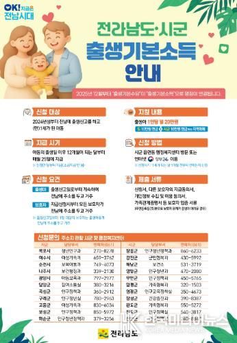 전남도는 2025년 11월 기본사회 흐름을 반영해 ‘전라남도 출생기본소득 지급에 관한 조례’를 개정하고, 제도 명칭을 출생기본수당에서 출생기본소득으로 변경했다.