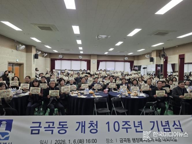 [ 한국미디어뉴스 이보영 기자 ] 2026년 개청 10주년을 맞은 권선구 금곡동은 지난 6일 지역구 의원과 주민 등 100여 명이 참석한 가운데 주민자치회 및 통장협의회와 함께 10주년 기념행사를 개최했다.