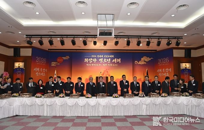[ 한국미디어뉴스 이원영 기자 ] 김태흠 충남도지사는 7일 천안에 있는 충남북부상공회의소 대회의실에서 열린 ‘2026년 충남 경제계 신년교례회’에 참석해 기업인들을 격려하고 새해 인사를 전했다.