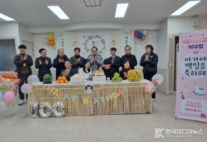 [ 한국미디어뉴스 이원영 기자 ] 태백시 문곡소도동행정복지센터는 태백산봉사단과 함께 지난 7일 문곡소도동에서 주민등록번호를 부여받고 백일을 맞은 아기를 대상으로 2026년 첫 번째 백일기념 행사를 진행했다.