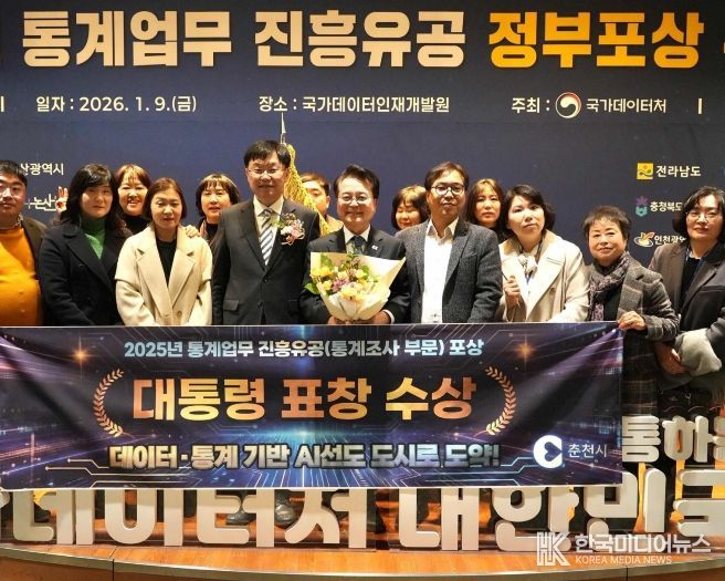 [ 한국미디어뉴스 이원영 기자 ] 춘천시가 9일 2025년 통계업무 유공을 인정받아 강원특별자치도 18개 시군 중 최초로 대통령 표창을 수상했다.