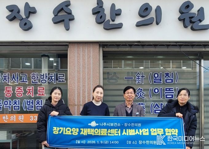 [ 한국미디어뉴스 이종철 기자 ] 전라남도 나주시는 지난 9일 남평읍에 있는 장수한의원(원장 박소영)과 ‘장기요양 재택의료센터 시범사업’ 추진을 위한 업무협약을 체결했다고 밝혔다.