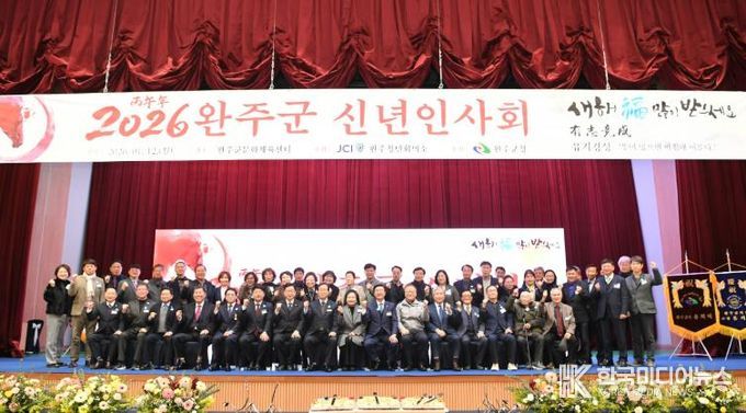 [ 한국미디어뉴스 이종철 기자 ] 2026년 완주군 신년인사회가 12일 완주문화체육센터에서 완주청년회의소(JCI) 주관으로 열렸다.