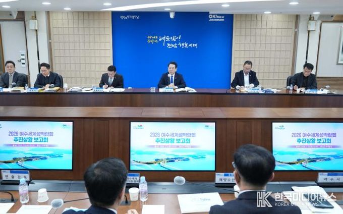 [ 한국미디어뉴스 이종철 기자 ] 전라남도는 13일 도청 서재필실에서 2026 여수세계섬박람회 추진상황 보고회를 열고 여수시·조직위 등과 박람회 성공개최를 위한 ‘원팀 체제’를 가동, 전시·행사·안전·교통 분야별 협업과 현장 대응력을 높이기로 했다.