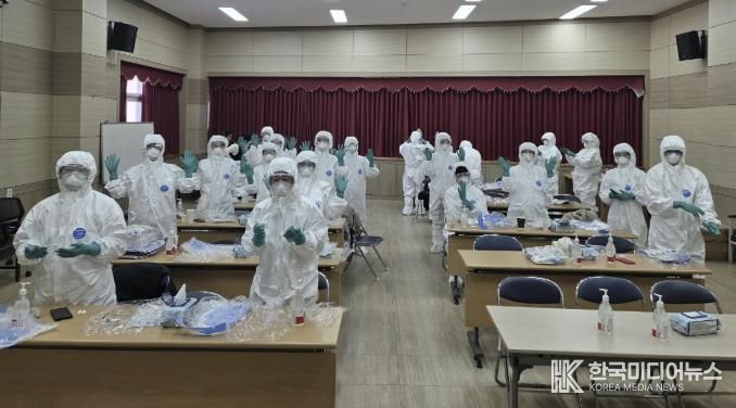 아울러 현장 대응 능력 강화를 위해 살처분 현장 참여자를 대상으로 개인보호구(Level D) 착·탈의 실습교육을 병행했다.