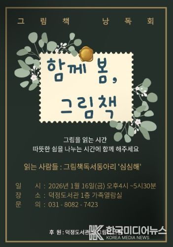 [ 한국미디어뉴스 김서안 기자 ] 양주시 덕정도서관은 오는 1월 16일 16시부터 17시 30분까지, 도서관 1층 가족열람실에서 그림책 낭독회 '함께 봄, 그림책'을 운영한다.