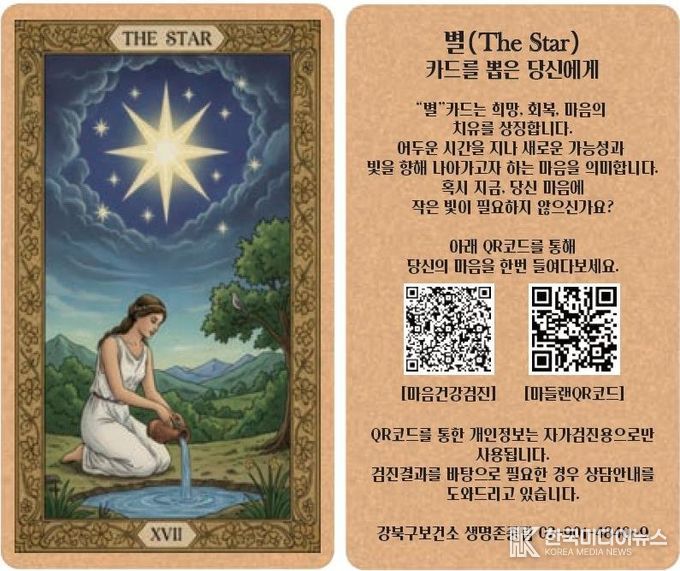 구는 관내 신한은행 금융 창구에 큐알코드(QR코드) 기반 타로카드 형태의 마음건강검진 시스템을 도입해 누구나 부담 없이 자신의 마음 상태를 점검할 수 있도록 했다. 비치된 타로카드 뒷면의 큐알코드를 통해 마음건강검진을 실시하고, 필요한 경우 상담을 받을 수 있다.