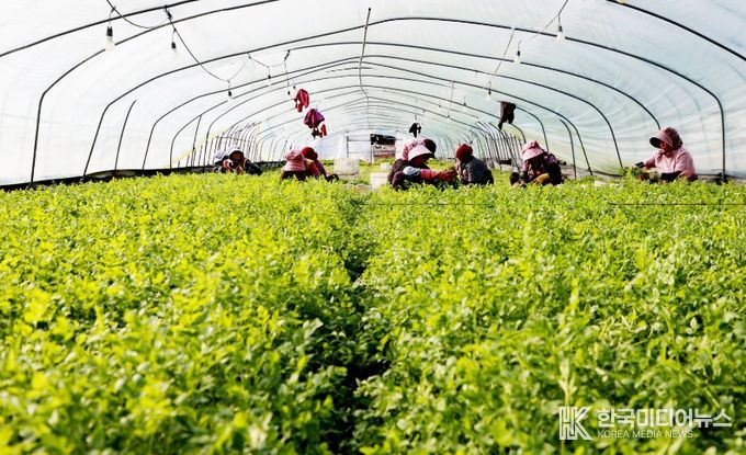 [ 한국미디어뉴스 김홍철 기자 ] 경남 의령 자굴산(897m) 기슭 가례면 밭미나리 비닐하우스에서 14일 농민들이 겨울 추위를 뚫고 ‘자굴산 청정 밭미나리’ 수확에 한창이다.