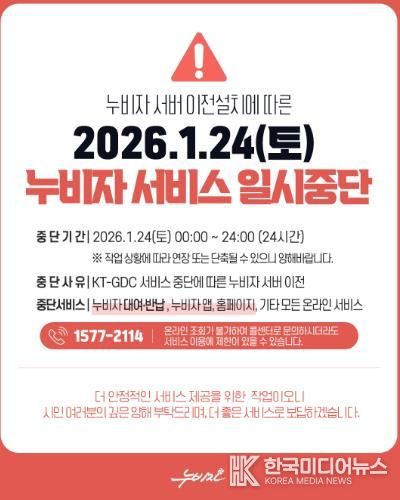 이번 일시 중단은 KT 데이터 센터 김해지점 서비스 중단에 따라 누비자 서버 등 정보시스템 일체를 KT 서부산지점으로 이전하는 작업에 따른 것이다.