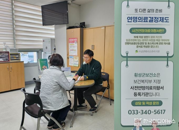 [ 한국미디어뉴스 이원영 기자 ] 횡성군보건소는 지난해 11월, 사전연명의료의향서 등록기관으로 지정되어 2026년 1월부터 사전연명의료의향서 상담과 등록 업무를 본격 시행한다.