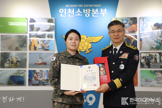 [ 한국미디어뉴스 이원영 기자 ] 인천소방본부는 지난 16일 의정 갈등 상황 속에서도 군 헬기를 활용한 응급환자 항공이송에 기여한 공로를 인정해, 국군의무사령부 소속 남소윤 소령에게 소방청장 표창을 전수했다고 밝혔다.